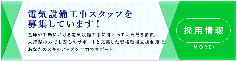 工場や倉庫の電気設備のことなら、多数の実績と経験を持つ弊社の電気工事施工管理技士・電気工事士にお任せください。